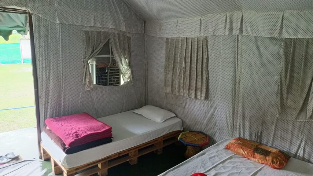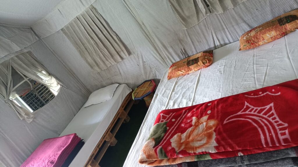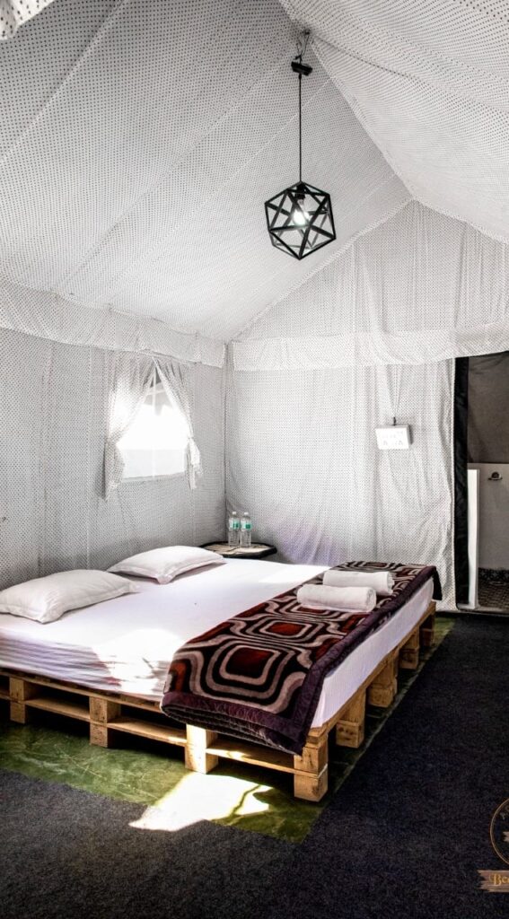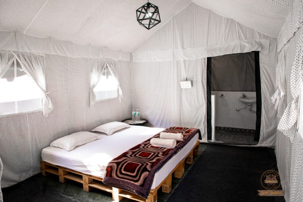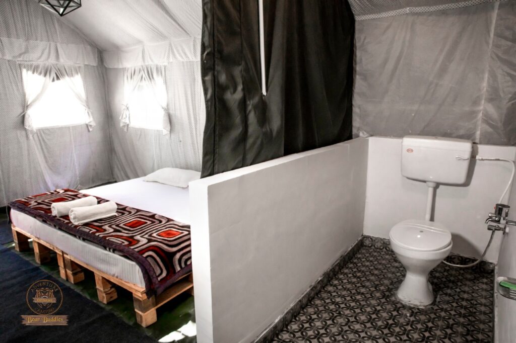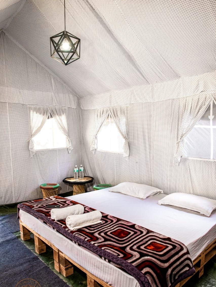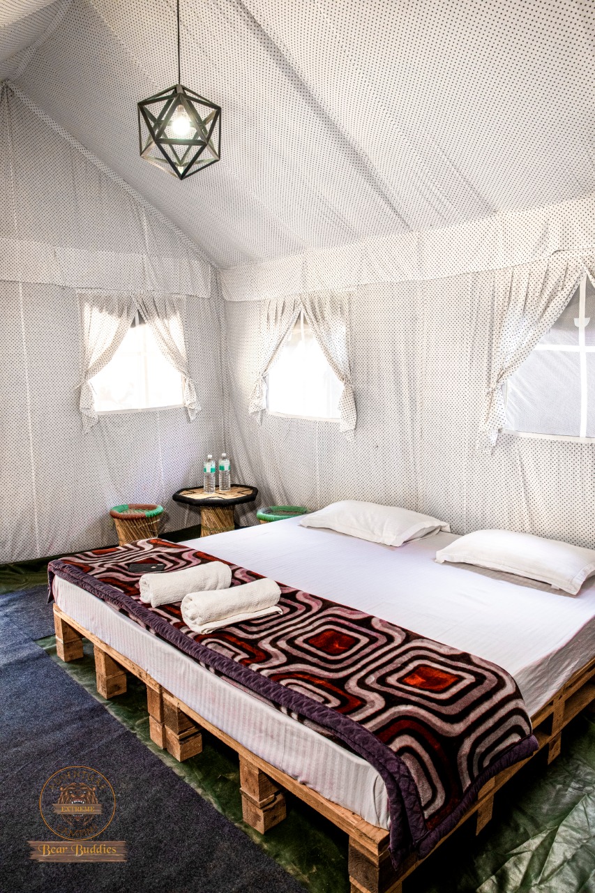 Enjoy a cozy stay in Swiss tents with attached washrooms, available on double, triple, and quad sharing basis, equipped with all essential amenities. Unwind by the bonfire in the evening, soak in the tranquil ambiance, and relish delicious multi-cuisine meals (veg & non-veg) including morning and evening tea, breakfast, lunch, evening snacks, and dinner. Whether youβre here for adventure, relaxation, or bonding with loved ones, Riverside Camping in Rishikesh ensures an unforgettable experience!