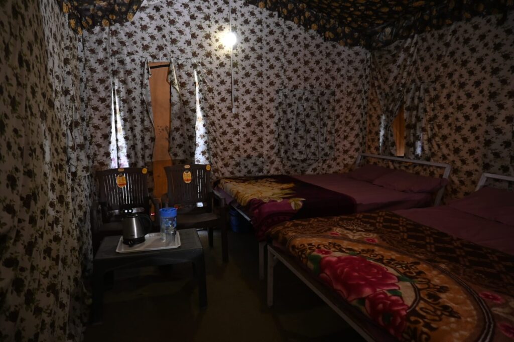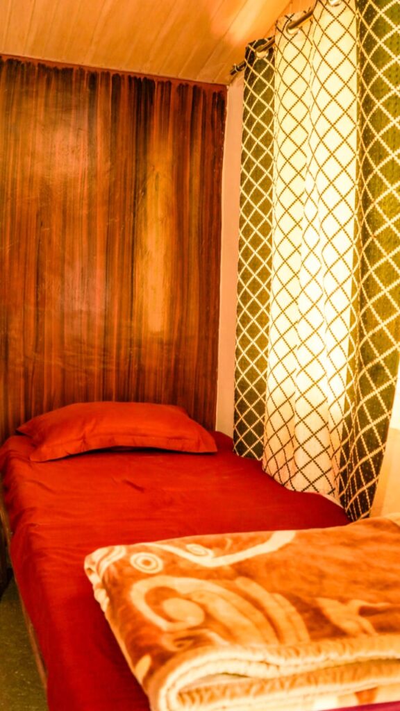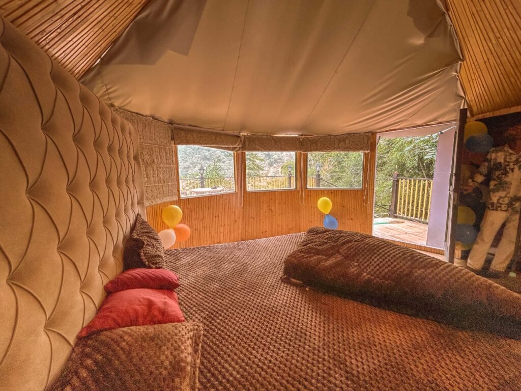 Enjoy a cozy stay in Swiss tents with attached washrooms, available on double, triple, and quad sharing basis, equipped with all essential amenities. Unwind by the bonfire in the evening, soak in the tranquil ambiance, and relish delicious multi-cuisine meals (veg & non-veg) including morning and evening tea, breakfast, lunch, evening snacks, and dinner. Whether youβre here for adventure, relaxation, or bonding with loved ones, Riverside Camping in Rishikesh ensures an unforgettable experience!